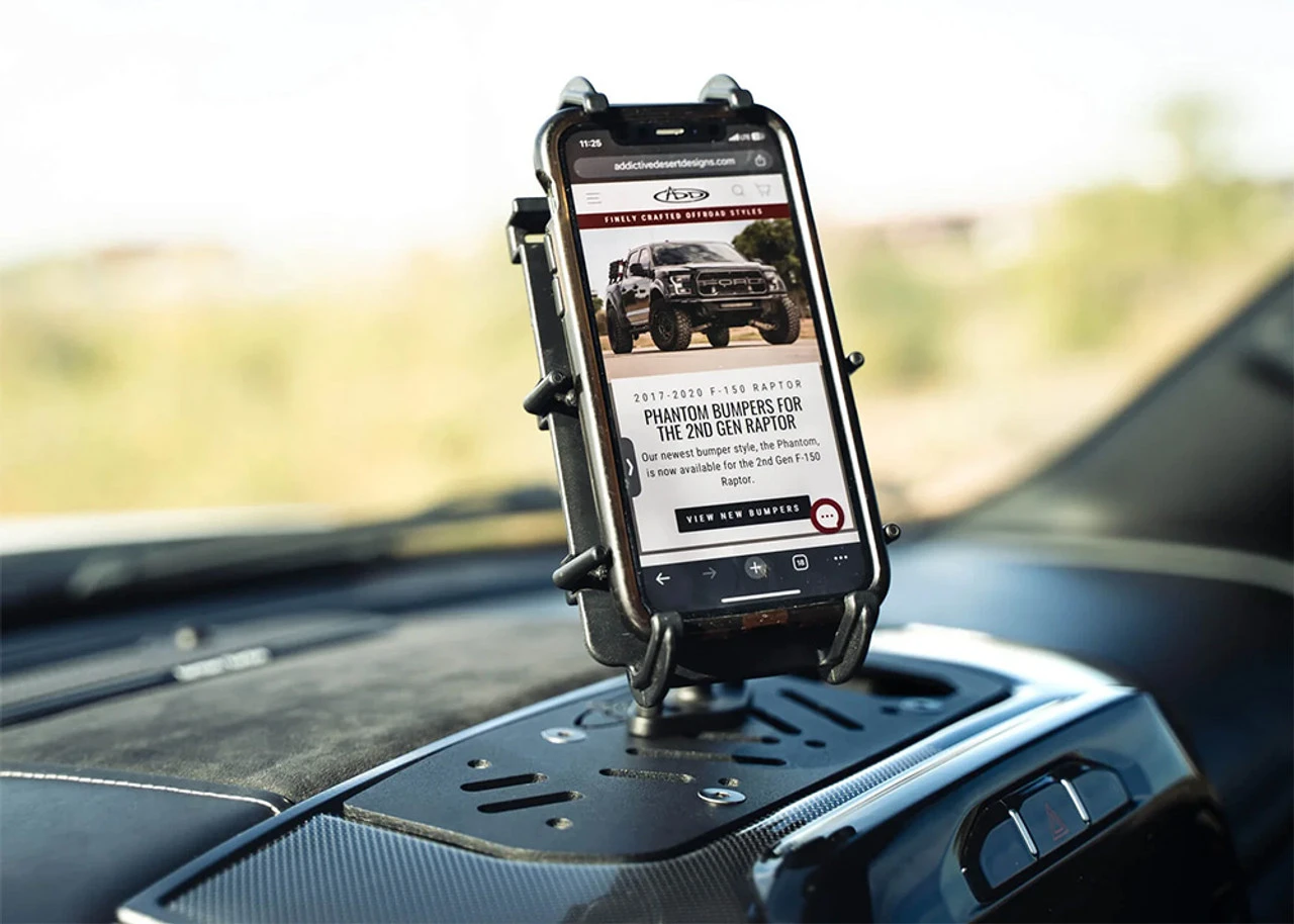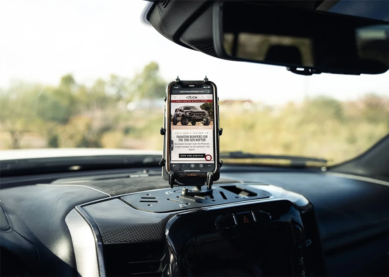ADD’s Ram 1500 & TRX Digital Device Dash Mount provides a versatile surface for mounting your digital device holders and other accessories. Compatible with Ram Mounts, this plate helps you organize your devices at arms reach. It is perfect for smartphones, action cameras, GPS, radios, tablets, and more. Towards the side of the plate is a cutaway that provides easy access to the OEM 12v port.