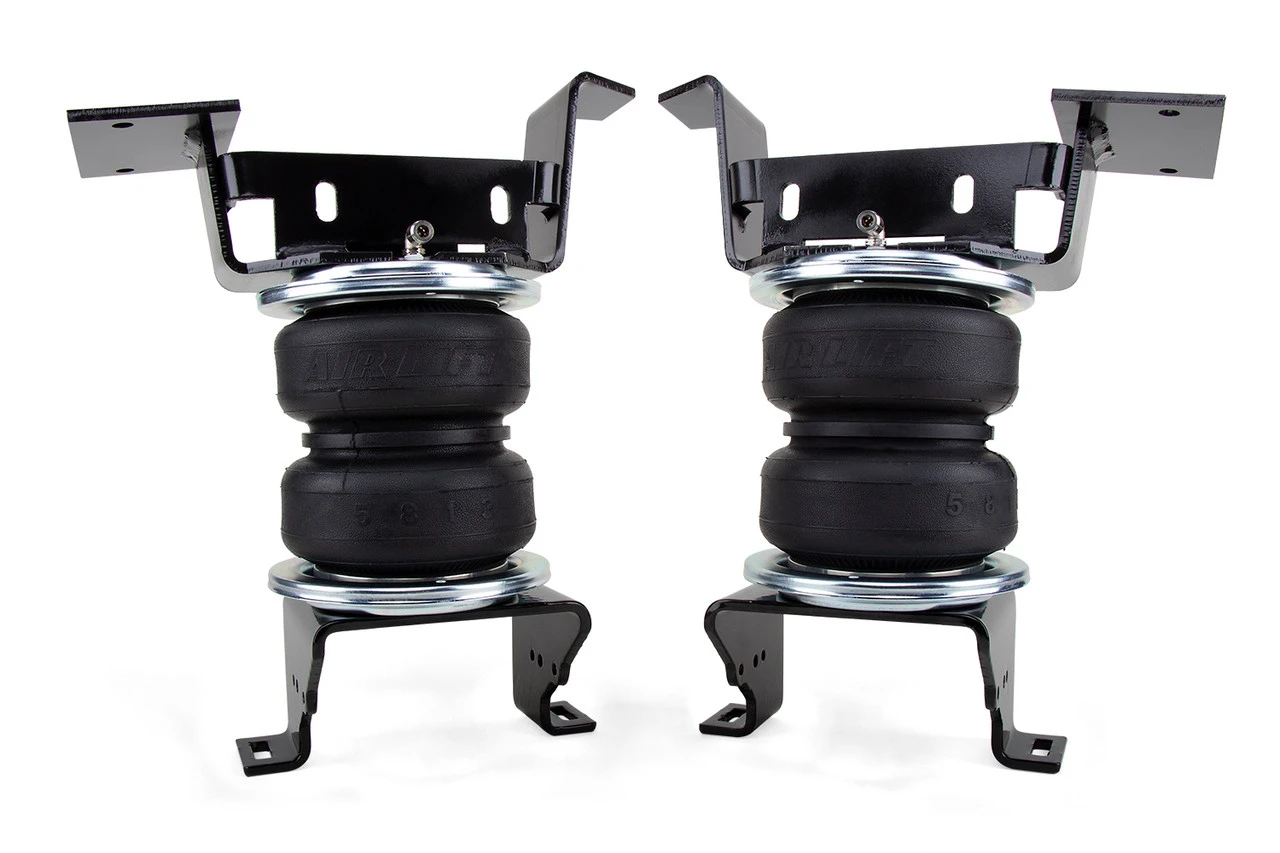 Air Lift adjustable air helper springs level your load, and give your truck, van, or SUV a safer, more comfortable ride. Air springs are easy to install between your existing springs and the vehicle frame. Just add air when towing or hauling a heavy load, and reduce air pressure when unloaded, they are fully adjustable for a great ride. Air Lift air springs eliminate sag, sway, and bottoming out. They are made with rugged, durable components for long, reliable service. LoadLifter 5000 kits are Air Lift’s heaviest-rated kits for hauling or towing heavy loads. They have up to 5,000 pounds of leveling capacity, right up to the manufacturer’s recommended Gross Vehicle Weight Rating, and are air adjustable from 5 to 100 PSI. LoadLifter 5000 kits fit such popular vehicles as ton and one-ton pickup trucks, many Class A, B & C motor homes, and commercial trucks and other severe uses. They also come standard with a limited lifetime warranty and an exclusive 60 day ride satisfaction guarantee.