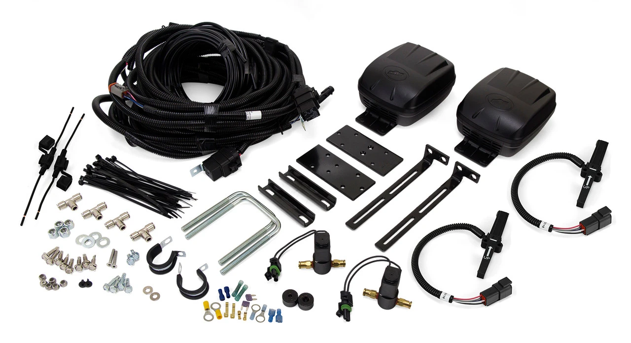 Offering automatic vehicle leveling for leaf-sprung vehicles, SmartAir II (Dual Path) from Air Lift will have your vehicle back on the level in no time. The quick and easy automatic system uses a unique, non-contact magnetic height sensor to measure the height of the vehicle when weight is added to the bed, down to 1/16 in. . Based on the height of the vehicle, the system can intelligently determine whether the air helper springs need to inflated or deflated, as the load increases or decreases. SmartAir II (Dual Path) allows for the inflation of each air spring independently to different pressures depending on load. With the included, pre-assembled wiring harness, you’ll be able to have your vehicle level and on the road in only a matter of hours. No air line or wiring needs to be routed to the cab of the vehicle, which eliminates the need to drill into the firewall and makes installation even easier. The fully-illustrated installation manual provides clear instructions to make installation a breeze. Made from weather-resistant, OEM-quality products, you can be sure that your SmartAir II (Dual Path) system from Air Lift will fit, work and last, and the 100 PSI, 0.92 CFM, 15% Duty Cycle, 12V, compact air compressor will get the job done fast. As the leader in air suspension products for over 65 years, Air Lift is committed to delivering quality parts that last. To ensure the highest quality, longevity, and customer satisfaction, the system comes with a two-year warranty and a 60-day, no-questions-asked, money-back guarantee — not to mention the Air Lift reputation for great customer service and technical support, should you run into any snags in the installation process.