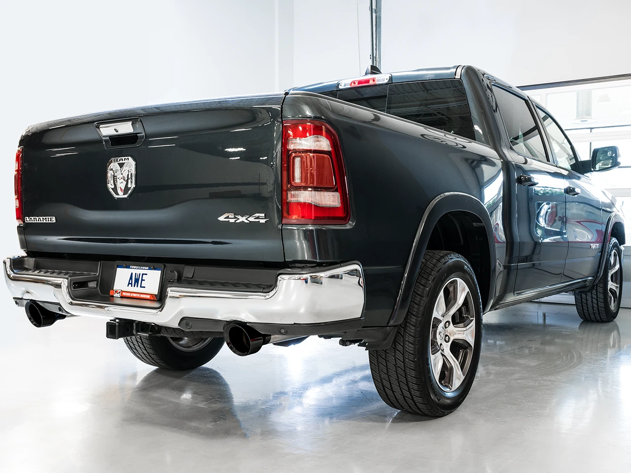 The 0FG is a 3” T304L stainless steel Cat Back configuration featuring AWE’s patented drone-canceling 180 Technology. Together, combined with precision fitment, class-leading rigidity, and signature 5” slash-cut tips, you’re looking at the Best Sounding Exhaust on the Planet for the 5th gen RAM. American-sourced T304L stainless steel with a wall thickness of .065” runs smoothly from front to back, connecting right after the factory emissions equipment. After exiting the 180 Technology resonator, the exhaust splits into dual 3” piping up to the tips. This system comes with Diamond Black 5” double-walled slash-cut tips, stamped with the AWE logo, to let everyone know what team you’re on.Welcome to the new breed of RAM exhaust: 0FG, only from AWE.