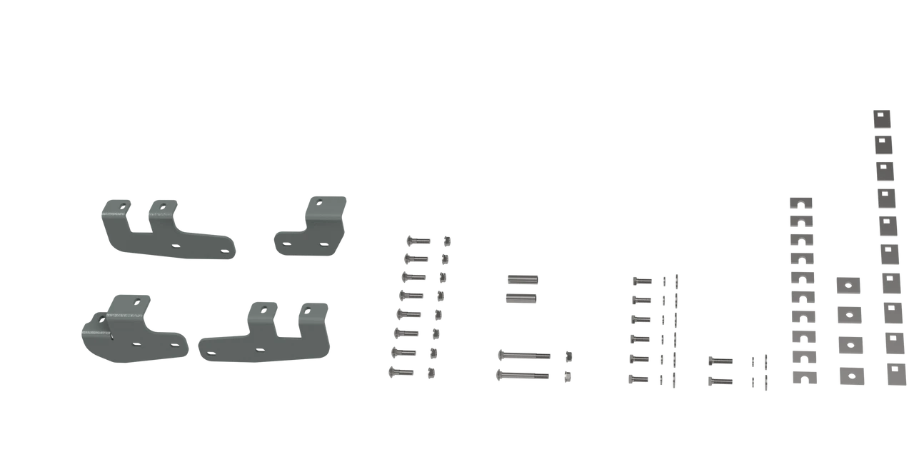- 2 Base rails, custom brackets, and hardware included