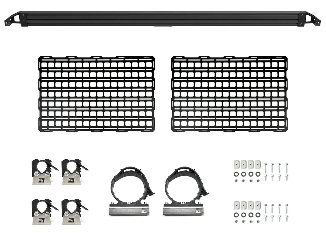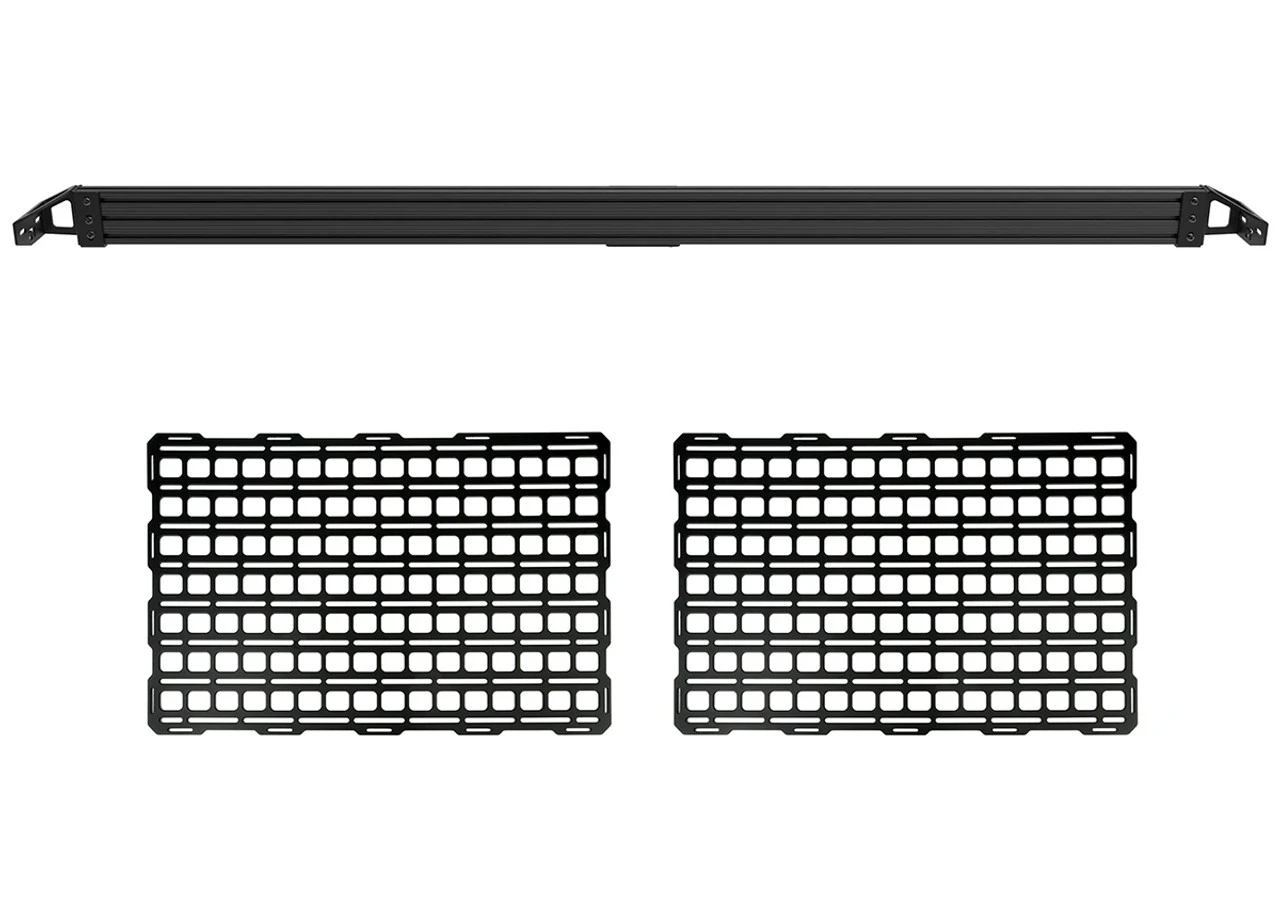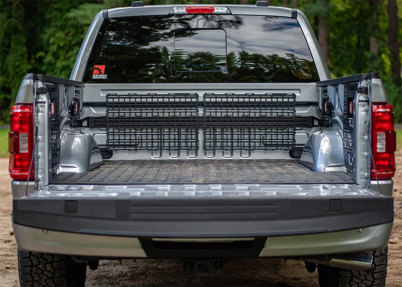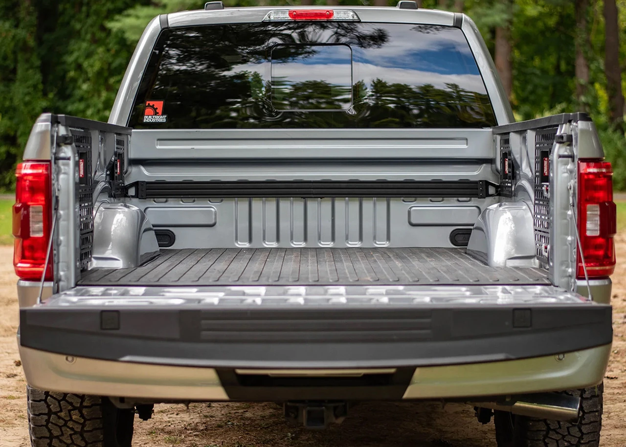 In the 2015+ F-Series lineup, each truck bed is equipped with forward tie-down points. Sadly, these don’t offer a great deal of flexibility when it comes to storing and securing a variety of items. The BuiltRight BAR installs using these same factory mounting points, without the need for modification to the vehicle. The rail is extremely useful on it’s own but the optional panels provide MOLLE-compatible features for the use of MOLLE/PALS accessories in addition to universal slots for an infinite number of possibilities.