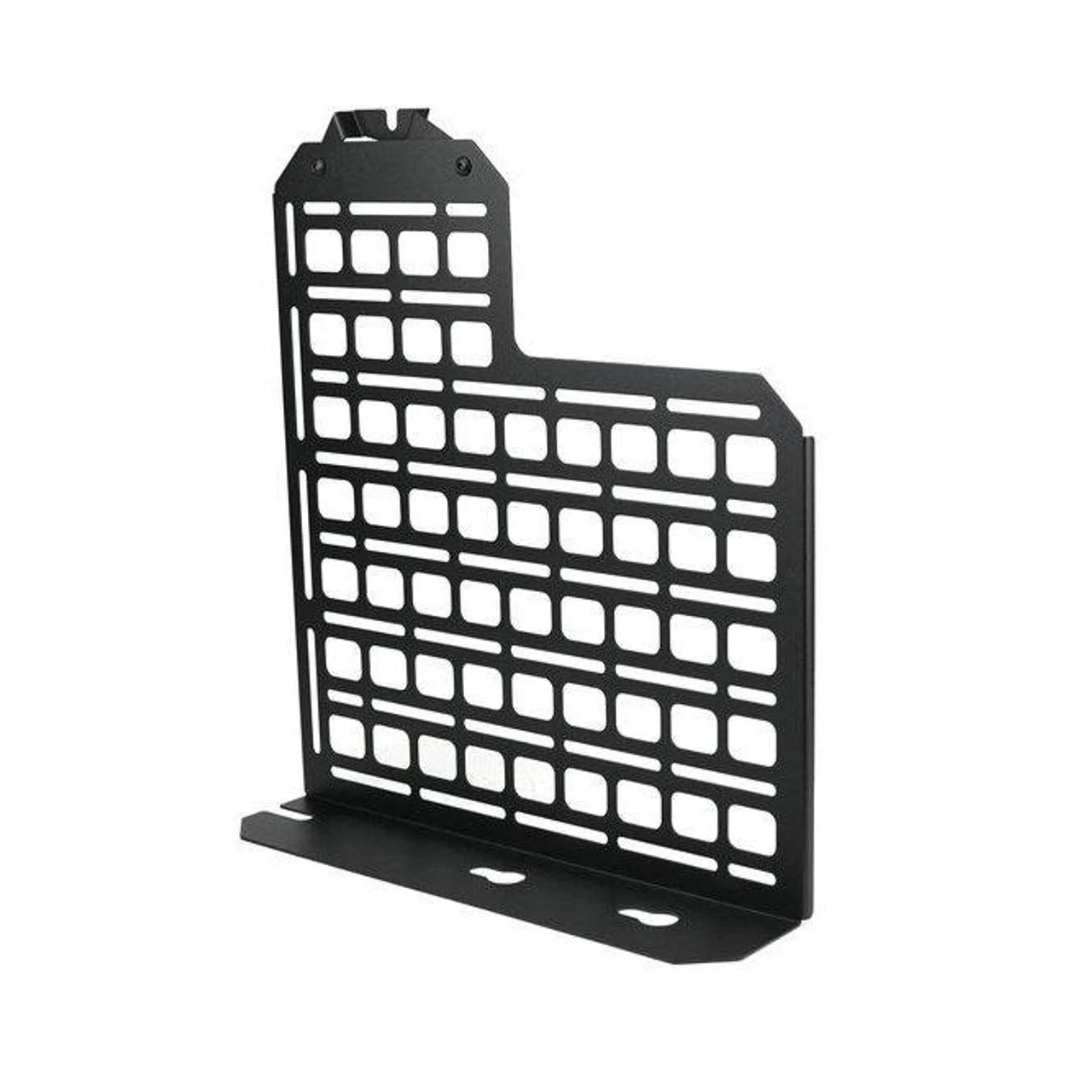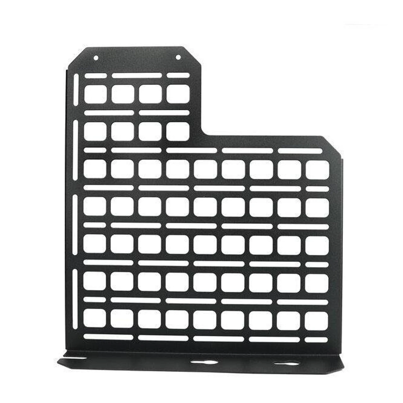 This panel is designed to mount behind the rear passenger seat of your F-Series truck, replacing the factory jack but providing a location to mount equipment/gear/tools. Each piece is laser cut from 16ga mild steel and then finished with a durable texture black powder coat.