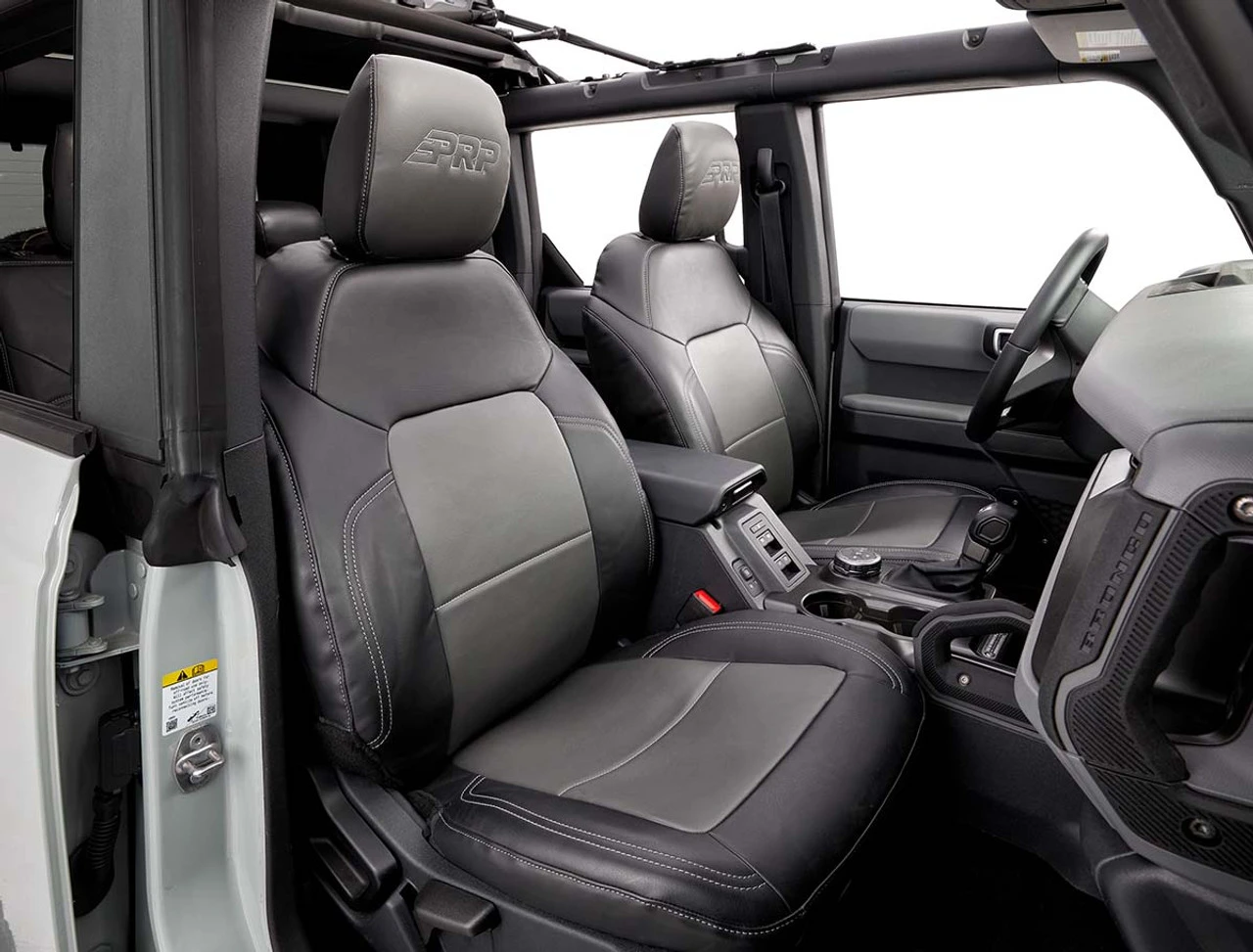 1. Visit the PRP Seats website at the following link to view available color options and utilize their visual design editor: Design Your Custom Bronco Seat Covers (opens a new window)