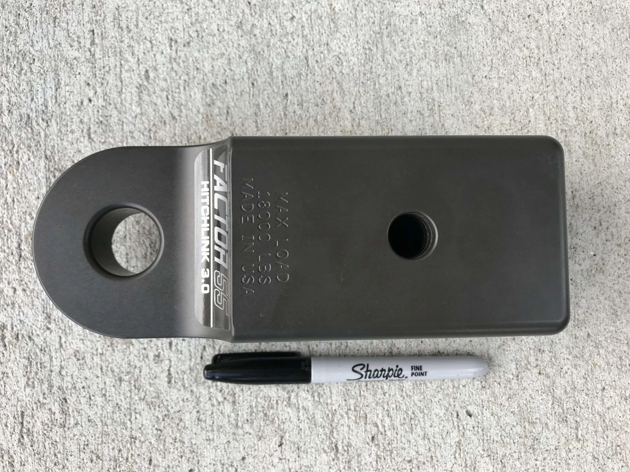 The HitchLink 3.0 will accept both 3.4 inch and 7/8 inch shackles. It can be oriented inside the hitch receiver allowing the shackle tab to be parallel to the bumper or vertical depending on its desired need. It also eliminates the need to use a receiver sleeve to downsize your receiver to a 2.5 inch or a 2 inch adapter. Rated at 18,000 lbs. Ultimate Failure at 70,000 lbs.