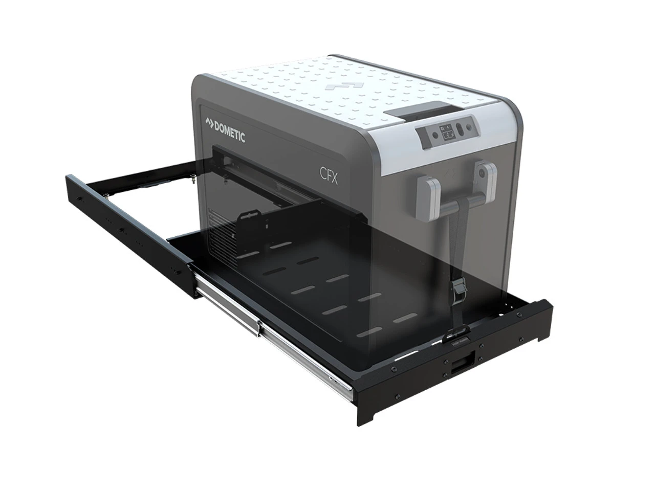 This slide-out tray offers easy access to a fridge (52L and smaller) and/or other stored gear with a low profile, rigid design. Product Dimensions: 793mm (31.2″) L x 535mm (21.1″) W x 85mm (3.3″) H