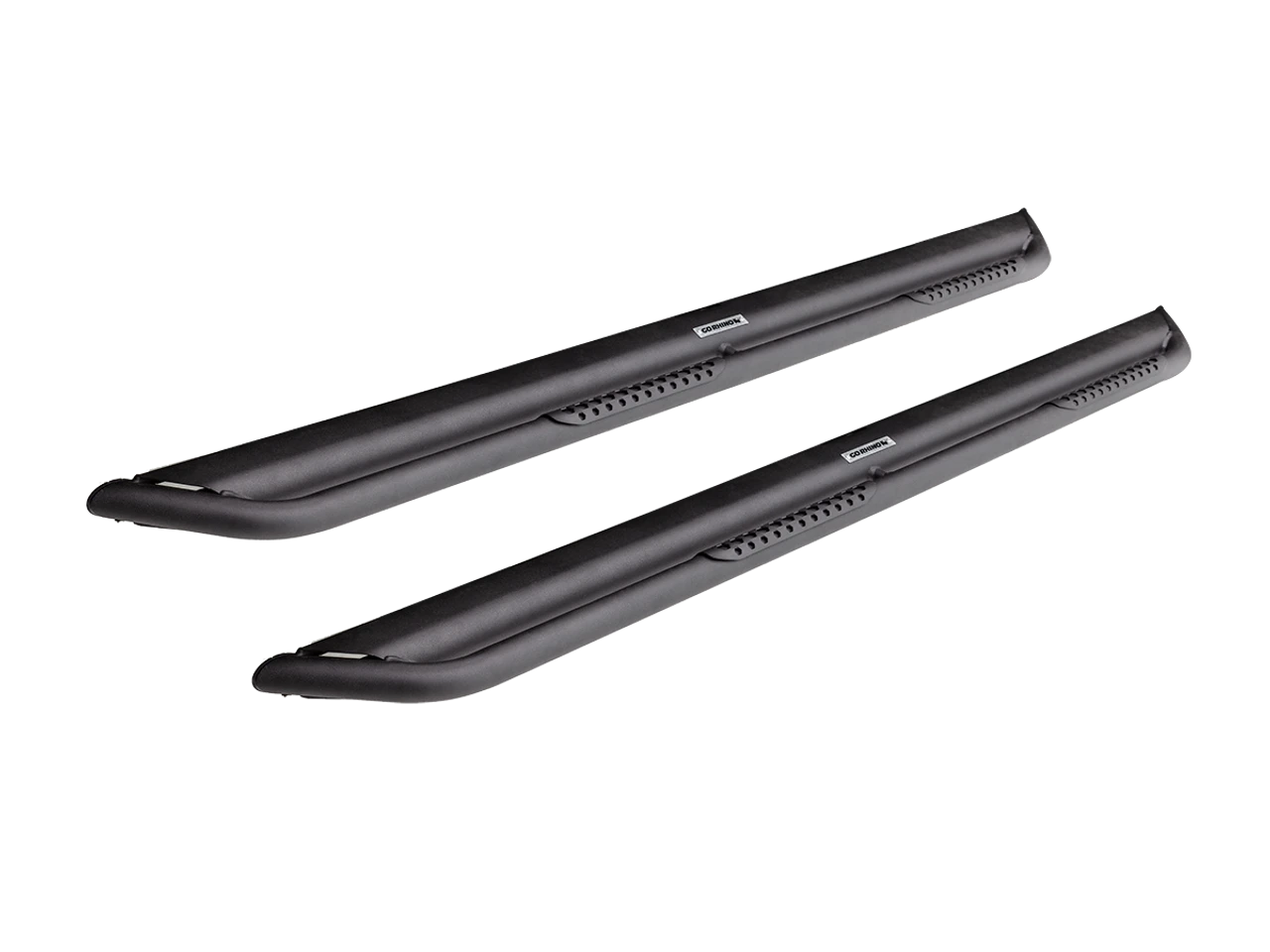 The Go Rhino Dominator DS Slider features a full length body mount rub rail for rocker panel protection and also helps users enter and exit lifted vehicles more easily. The DS is great when both high clearance and a step are needed during an off-roading adventure. Two steel step pads with a punched hex pattern offer a no-slip grip and can be mounted in multiple positions along the outer rub rail, or can be removed entirely. Installation is easy and the utilization of the OEM step and rock rail mount locations means no drilling or cutting required. Hardware and brackets are included. The DS Side Steps come with a Limited Lifetime warranty on materials and construction and a 5 year warranty on the Textured Black Finish.