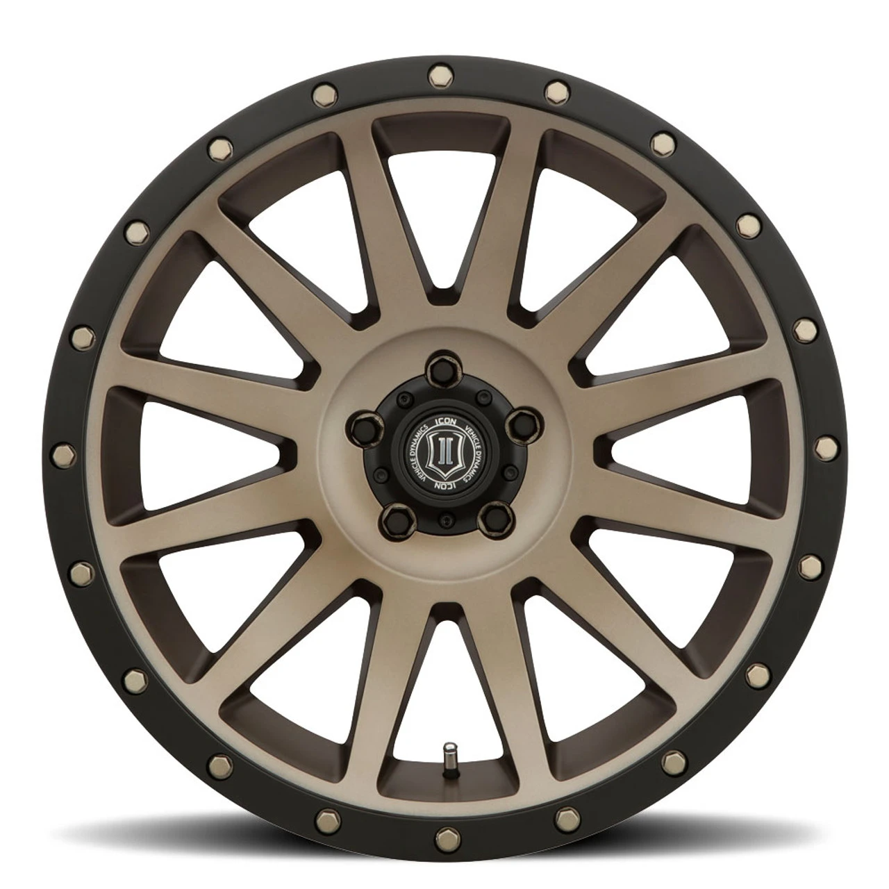 The 20×10” Compression is now offered in several new bolt patterns with unique backspace/offset dimensions to provide an aggressive style and stance for more style-focused customers. These wheels also yield a 2,750-lb load rating retaining the traditional utility and strength of ICON Alloys. Combining sharp lines, a concave spoke design, and style-oriented dimensions, these wheels will increase both the form and function of your vehicle. Available in Bronze, Satin Black, and Titanium finishes with color-matched rock ring bolts, the Compression has a classic style with the strength to match.