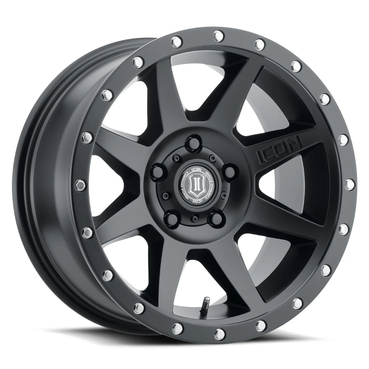 Bring a bold new look to your ride with the all-new ICON Alloys REBOUND! Combining sharp lines, a concave spoke design, and “ICON-optimized” dimensions, these wheels will increase both the form and function of your Jeep, truck, or SUV. Staying true to the ICON Alloys approach, the REBOUND has been engineered to maximize caliper clearance and optimize wheel position for un-hindered suspension travel and steering function. Backspace dimensions and wheel offset have been strategically developed to reduce scrub radius, improving all-around handling and ride quality and making a set of these wheels the perfect complement to an ICON Vehicle Dynamics suspension system.