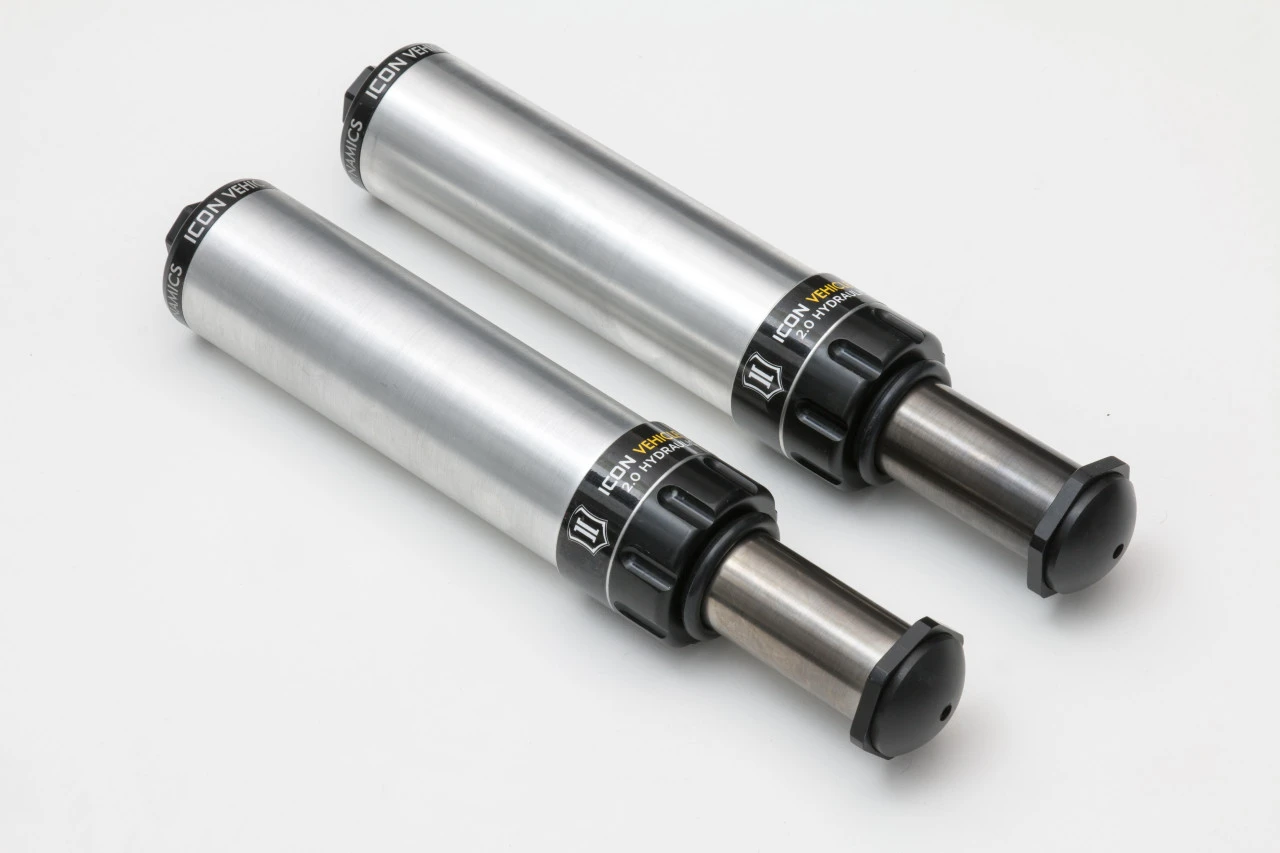 While the factory rear bump stops do a satisfactory job of absorbing impacts on a street driven truck, ICON found that there was much room for improvement during spirited driving in rough, off-road terrain. The ICON Vehicle Dynamics 2007-2021 Toyota Tundra Rear Hydraulic Bump Stop System was designed to take the off-road capability of the truck to new levels by significantly improving the bottom-out control of the rear suspension and reducing rear end kick. Like all ICON hydraulic bumps stops, these feature both velocity and position sensitive technology which means that as the shaft speed increases and moves through the travel, the force increases exponentially to provide excellent bottoming resistance that won’t negatively affect articulation.