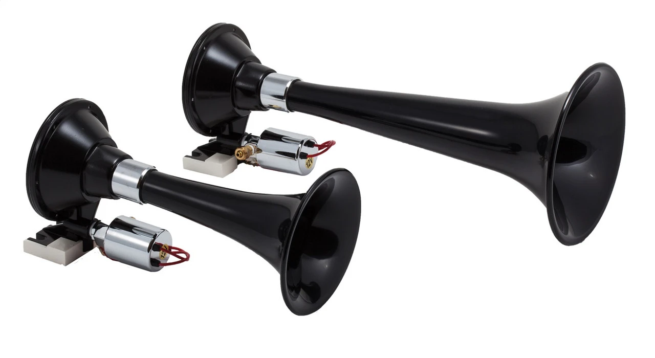 These train horns are designed for durability, easy fit and extreme sound. The ABS trumpets with extra-wide bells produce a bone-rattling locomotive horn blast that can be felt as well as heard. The 220’s feature two separate mounting air horns each with their own solenoids.