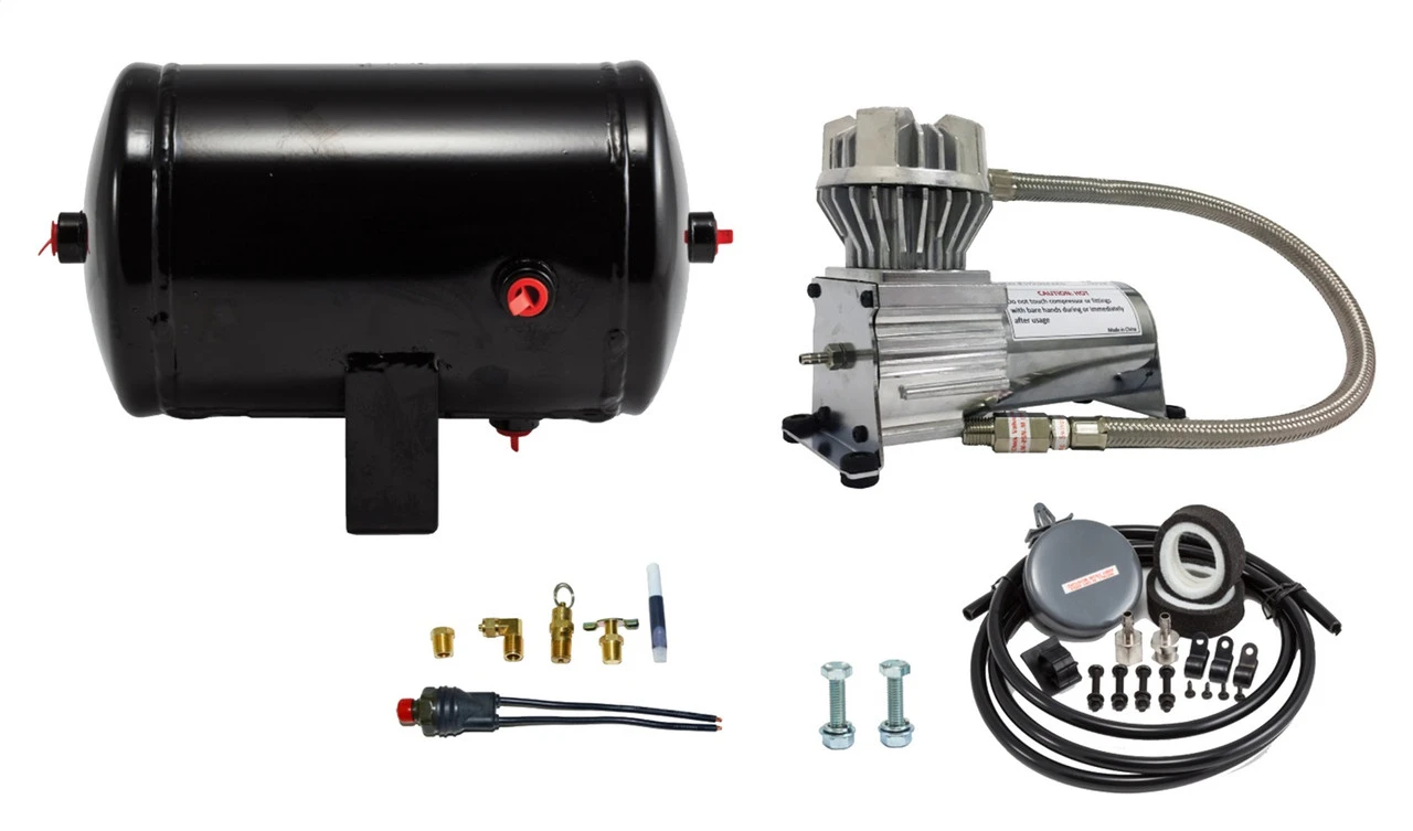 Higher pressure and higher capacity means a longer, louder blast! The model 6270 air system is the ideal product for powering any Kleinn Air Horn. This kit has many features that simplify installation and prolong the life of the product. Sealed and moisture/dust resistant compressor bodies make installation on the exterior no problem. the kit also includes a in. snorkel system and check valve to protect the compressor. The air tank has 5 ports and is configured so that no matter how you mount it, there is always a drain port available on the bottom.