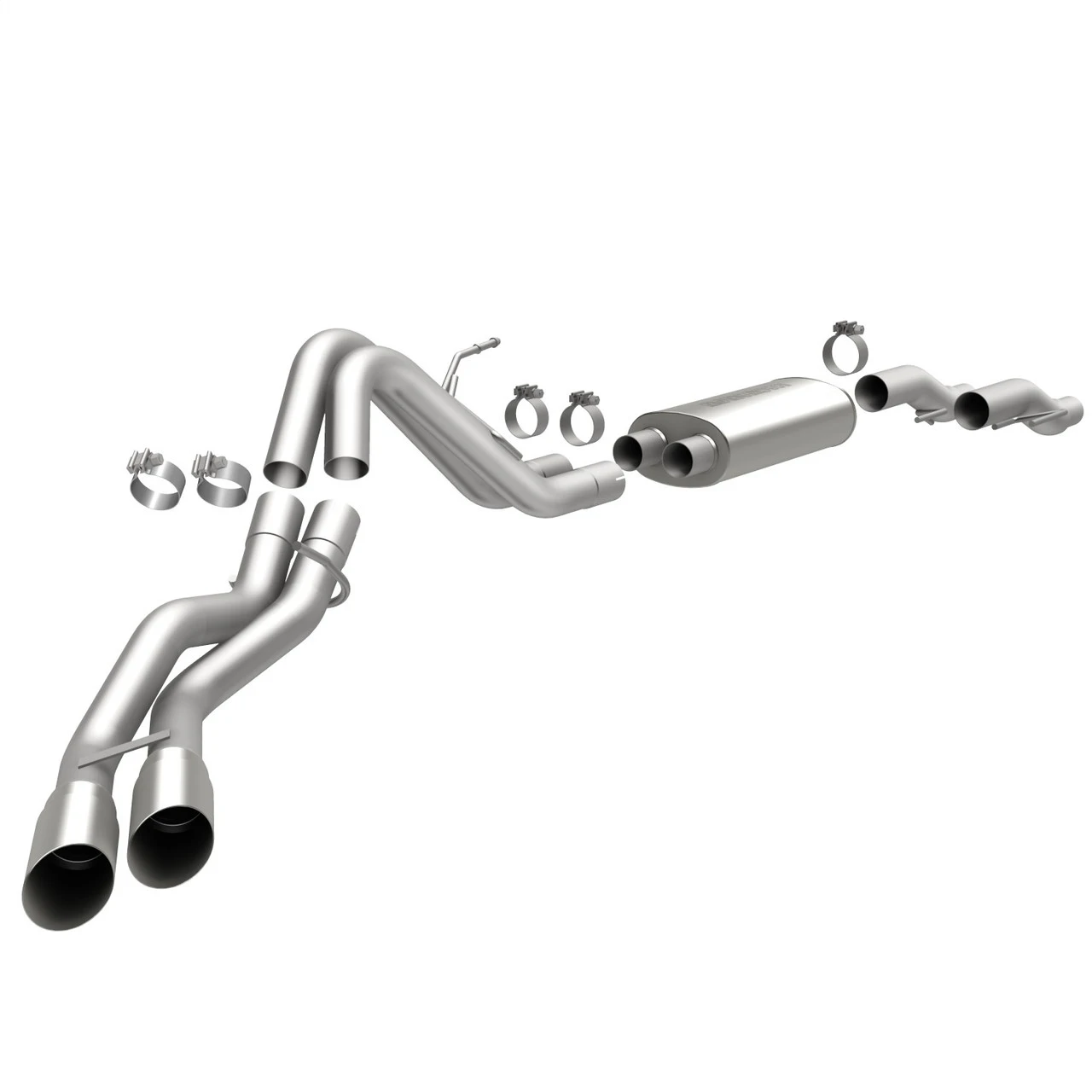 The MagnaFlow Ford F-150 Street Series 15461 brings out the personality of your 3.7L, 5.0L, 6.2L 2011-2014 Ford F-150 with our signature resonant, powerful engine tone and dyno-proven performance. Thanks to its fast-flowing, mandrel bent 3in. main piping and 1 Straight-Through mufflers ending in a Dual Same Side Behind Passenger Rear Tire exit with 3.5in. Polished Welded-Double Wall-Angle Cut-Folded Edge tips, this Ford F-150 exhaust kit has the performance chops to match its sporty sound and appearance. Upgrade your ride to the next level with an exhaust that has the pipes to put other Ford F-150’s to shame. With this system your vehicle will be producing Agressive exterior and Moderate interior sound levels while leaving other cars and trucks feeling envious at every stoplight. Exhaust kit 15461 features a cat-back layout that replaces your ride’s stock exhaust components from near the catalytic converter on back. Extensive 3D scanning during development has resulted in a direct-fit design that you can easily install yourself. 15461 is produced using CNC precision robotic manufacturing techniques and is backed by MagnaFlow’s 1-year limited finish warranty and limited lifetime construction warranty.