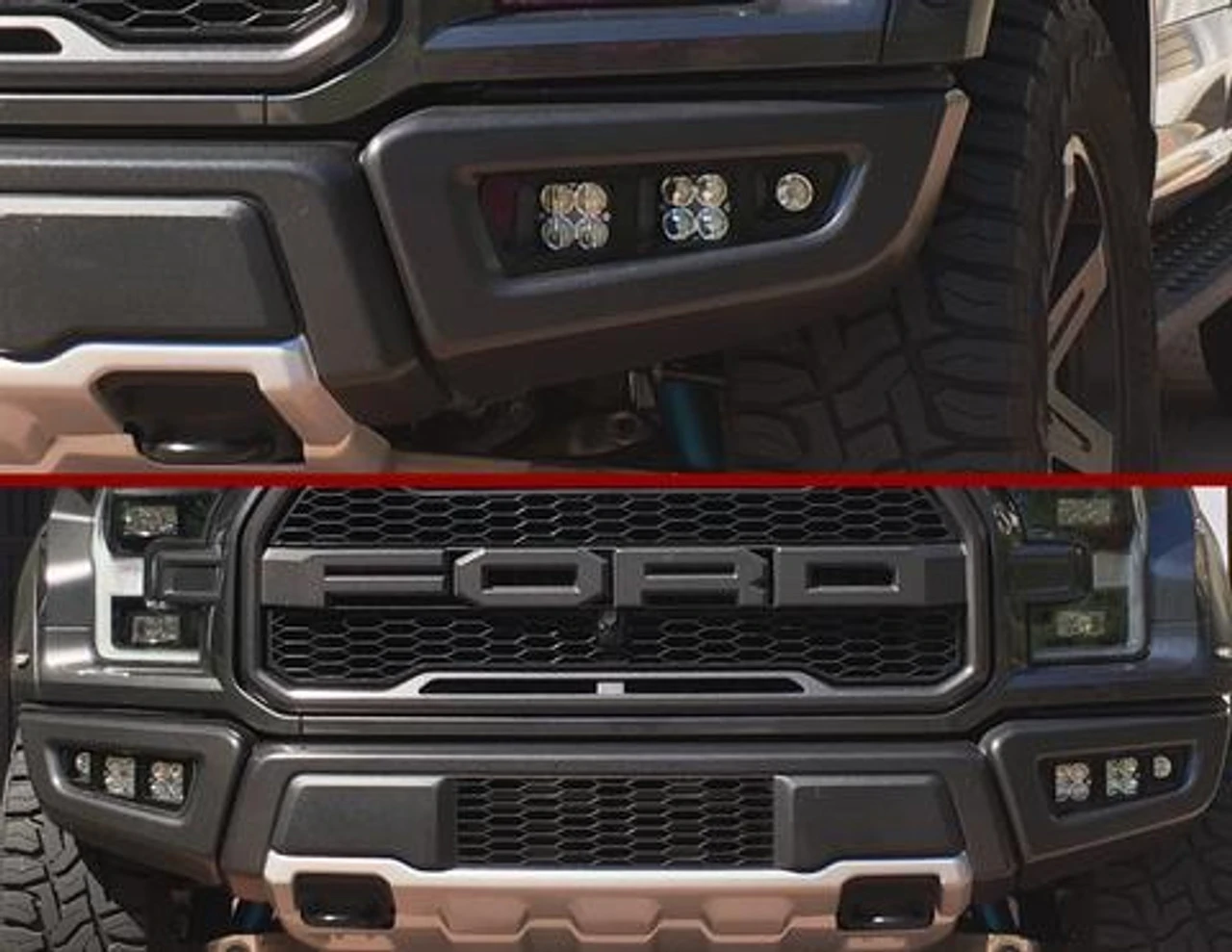 The only full factory-look bezel available for the 2017+ Raptor. Comes with two KC HiLites Flex lights with optional amber covers and four 3″ cube lights, for a total of 6 lights. We also supply our custom Raptor wiring harness in the full kits. Specifically designed for the 2017+ Raptor with the most common light quick connections and has wiring for lights with halos (Rigid Radiance and Vision X Halo). The harness is ready to connect directly to your overhead AUX switches. The bracket is constructed of powder coated stainless steel with UV resistant and paintable ABS inserts. The full kit comes complete with stainless steel bracket/bezel and mounting hardware as well as 6 lights, gaskets, inserts and a custom Raptor wire harness. Everything you need!