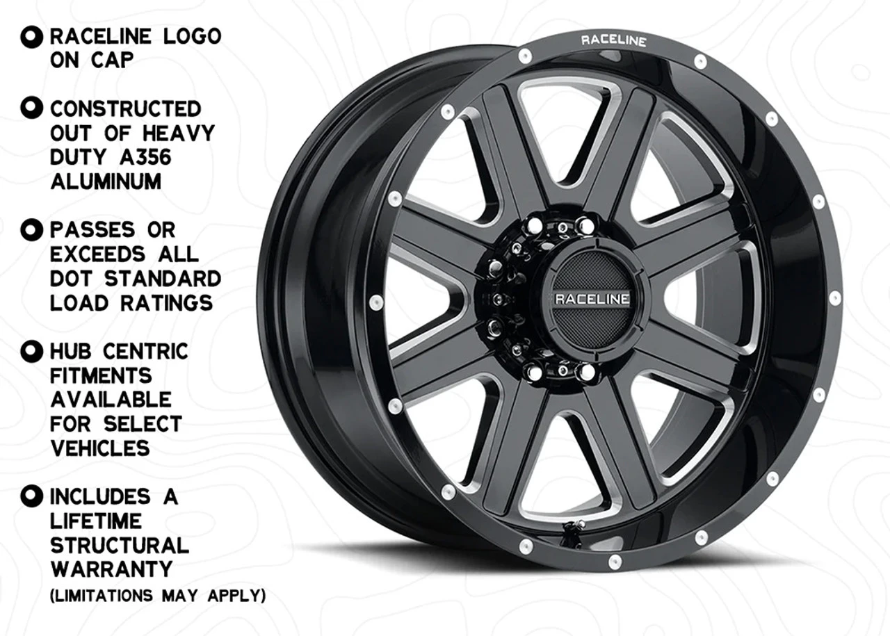 Aggressive yet simple 8 split spoke deep lip design, the Hostage is available in 16″ to 22″ diameters and comes in both Gloss Black Milled and Chrome finish. The Official Wheel of SCORE International Off-Road Racing Series. Includes a Lifetime Structural Warranty (limitations may apply).