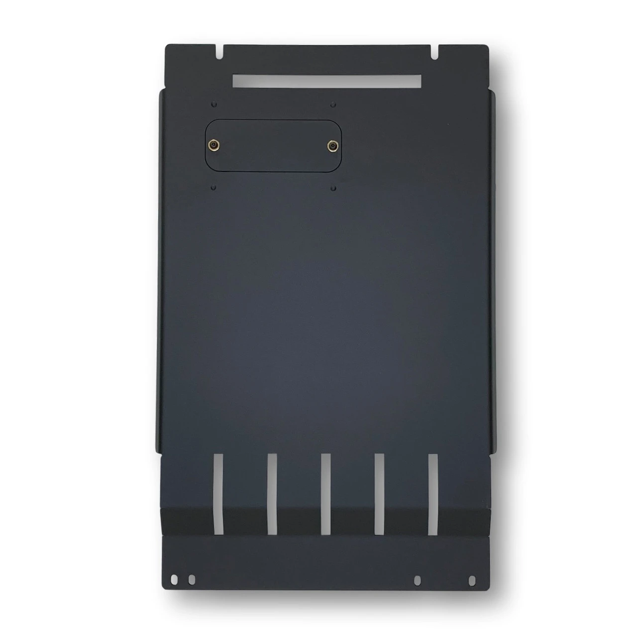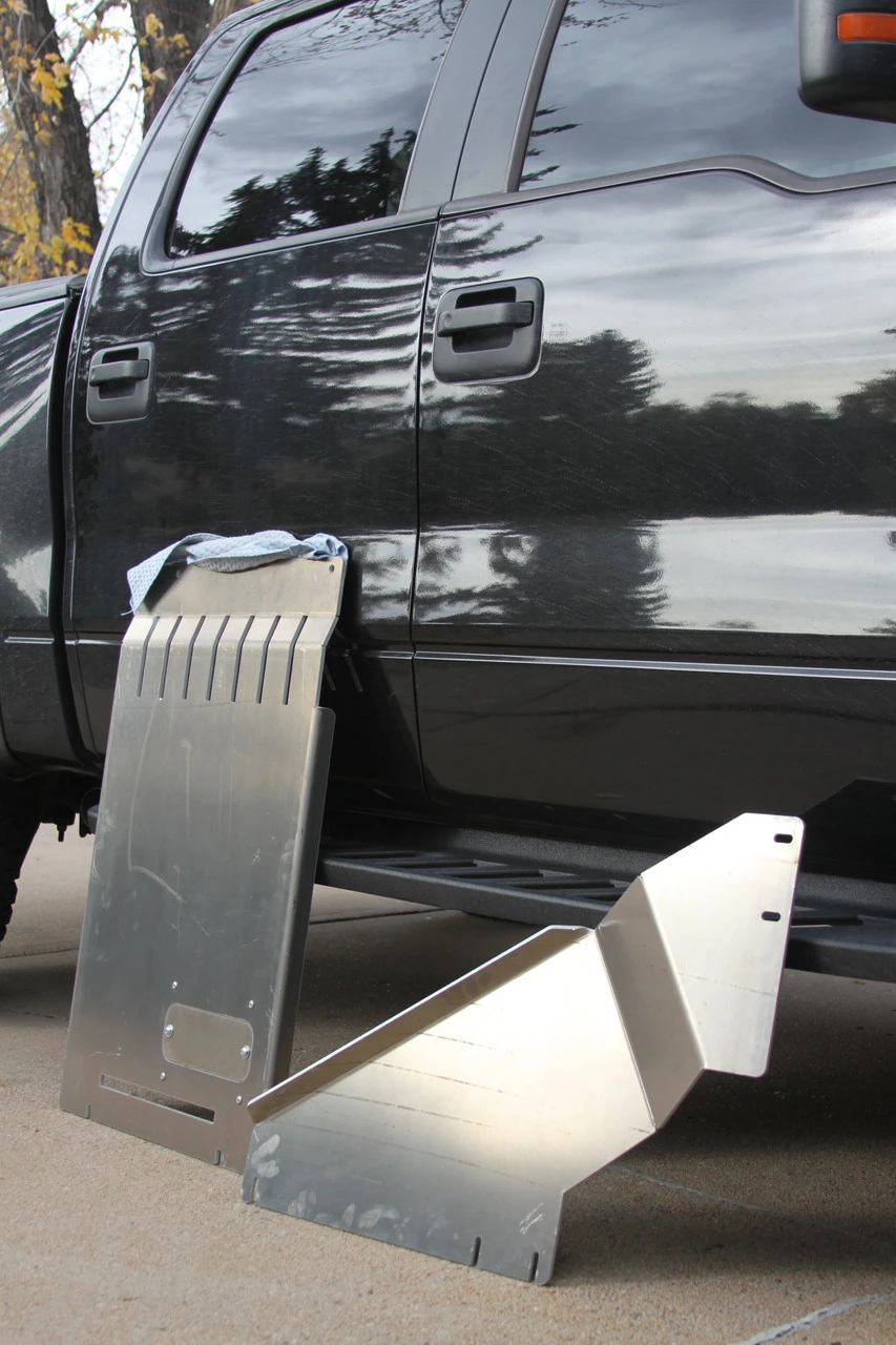 The RCI transmission skid plate is the optimal choice to swap out the OEM fiber cover on the Ecoboost models for a stronger cover that will last. Made of steel or aluminum, the RCI plate provides added strength compared to the OEM fiber cover, which is prone to get water-logged and fall off. The RCI design also spans more distance, providing twice as much coverage than the partial coverage of the OEM plate.