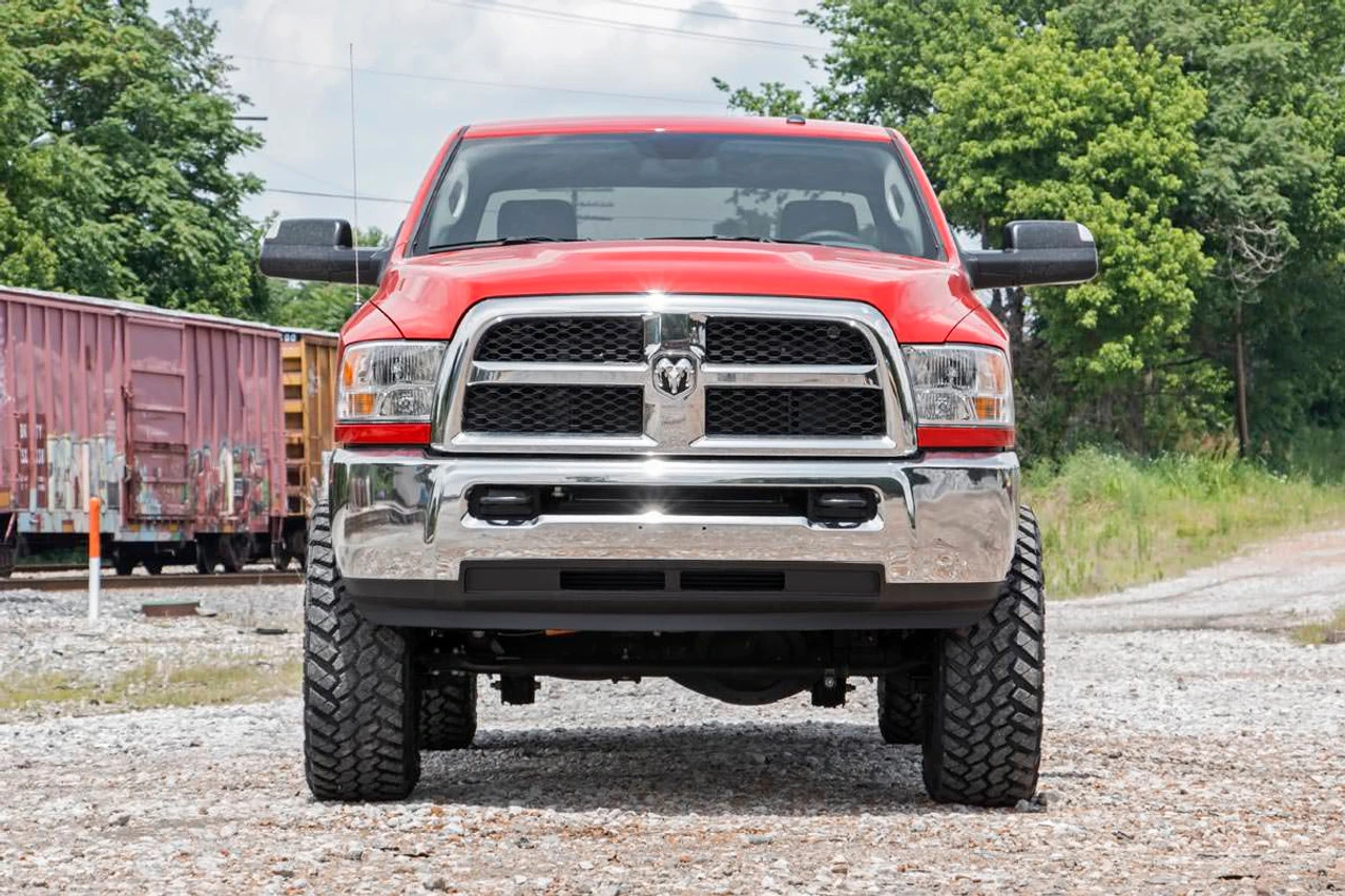 Compliment your RAM 3500’s aggressive, good looks with Rough Country’s 5-inch Radius Arm Drop Kit. New model RAM Trucks come with a wealth of impressive features right from the factory. Rough Country’s new 5-inch kit was engineered to retain these impressive factory specs while bumping up performance and durability where it’s needed most. The result is an aggressive, lifted beast with an mean profile and lush ride-quality that’ll make other RAM owners wonder where you got yours from!When changing a vehicle’s suspension, the key to preserving ride quality is in keeping the geometry of all suspension components as close to their factory angles as possible. Rough Country’s 5-inch Suspension kit features a set of Radius Arm Drop brackets allowing you to retain the beefy factory arms while keeping everything at optimum angles. In a further effort to preserve the truck’s factory ride, this kit retains the factory progressive rate coil spring — designed by Dodge specifically for the weight and ride quality of these new model trucks. This kit also features a set of anti-wrap rear blocks and N3 Shocks for a fantastic blend of smooth highway ride and awesome off-road performance.