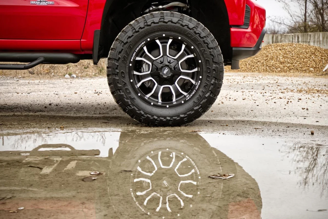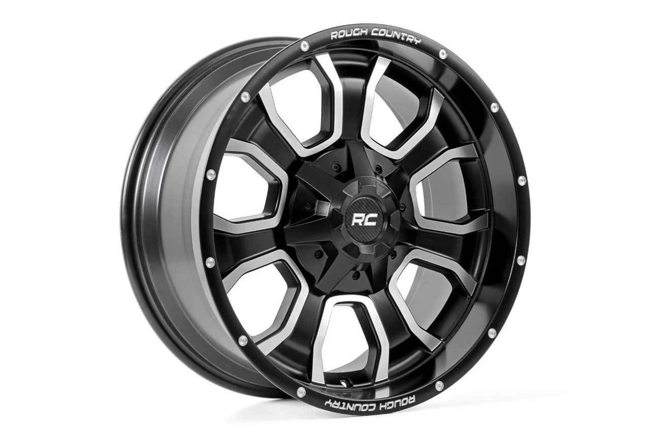 Set yourself apart from the pack with Rough Country’s One-Piece Series 93 Wheels. This 7-spoke black and machined wheel offers an incredible look that’s sure to turn heads. This one-of-a-kind wheel features 7 spokes that flare out near the lip for a dramatic visual style that’s perfect for any lifted vehicle. This stylish wheel features a gloss black coat with machined accents that pop under any truck or Jeep.Rough Country’s Series 93 is a one-piece wheel design, constructed from a single piece of heavy-duty aluminum for the optimal balance of weight and performance. Each Series 93 Wheel includes dual machined Rough Country logos and a center cap with RC carbon fiber logo design and includes a limited lifetime warranty.