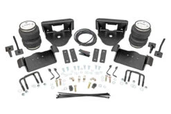 Heavy-duty Construction. Rough Country’s Rear Air Spring Kit features two RC branded high-quality double convoluted airbags complemented with DOT-approved airlines. Whether you plan on towing or hauling in the not-so-distant future Rough Country’s Air Spring kit is the must-have accessory to ensure that your trailer is level reducing the weight off of the tongue of your trailer. Each kit offers 1/4″ push connector fittings and all of the bracketry needed to ensure installation is lightning fast and secure! Rough Country’s Air Spring kit provides up to 5,000 lbs of load support to ensure that you experience less sway and bottoming out when braking and steering!