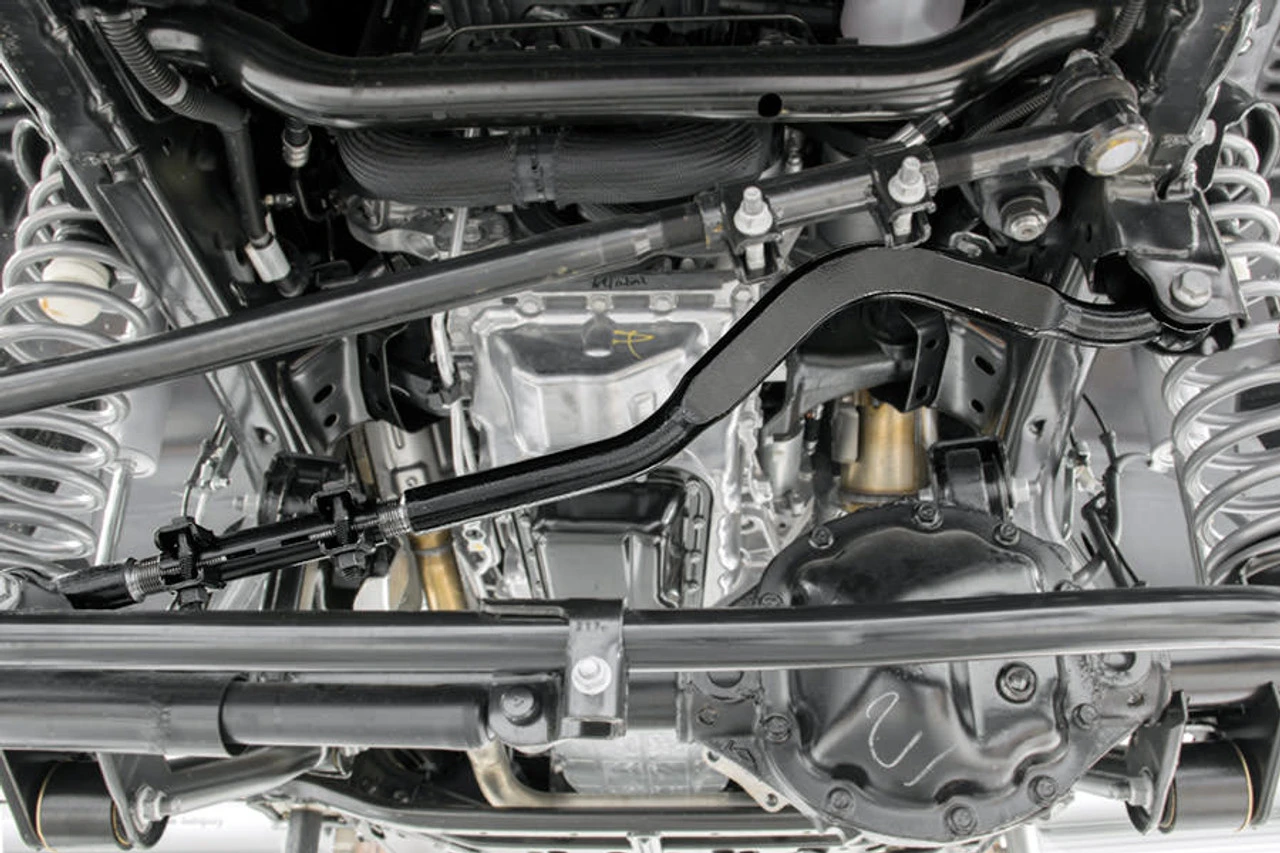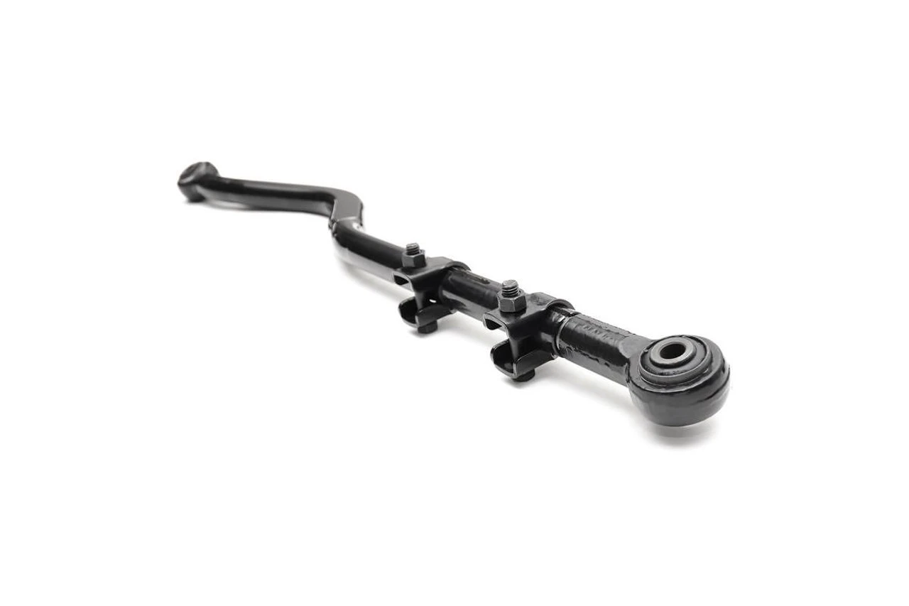 When you’re way off the beaten path the last thing you should worry about is how you’re getting home. Introducing Rough Country’s Forged Adjustable Track Bar for Jeep JK. This massive 16lb Track Bar is nearly twice the weight of your JK’s factory Track bar, offering you unparalleled support and the ultimate peace of mind in any driving situation.For those who are serious about flexing, crawling, and pushing your lifted JK to the limits, Rough Country’s Forged Adjustable Track Bar is a must. This new track bar is made of forged steel and features rubber Clevite bushings and a beefy construction that will dwarf stock equipment. This design allows the bar to keep your axles tame even under pure off-road torture.Best of all, it’s simple to install and even easier to adjust! As you lift a Jeep, the axles become off centered. This new Forged Adjustable Track Bar gives you the ability to adjust and re-center the axles while mounted to the vehicle. This bolt-on product can be attached in just minutes giving you a nearly instant upgrade.While many aftermarket track bars are adjustable, Rough Country’s new bar is fully adjustable on the vehicle; meaning no removal required, no trial and error lining it up, and no more wasted time just to dial in your bar. Simply attach to the vehicle and dial in your adjustable bar using our clamp and sleeve system.