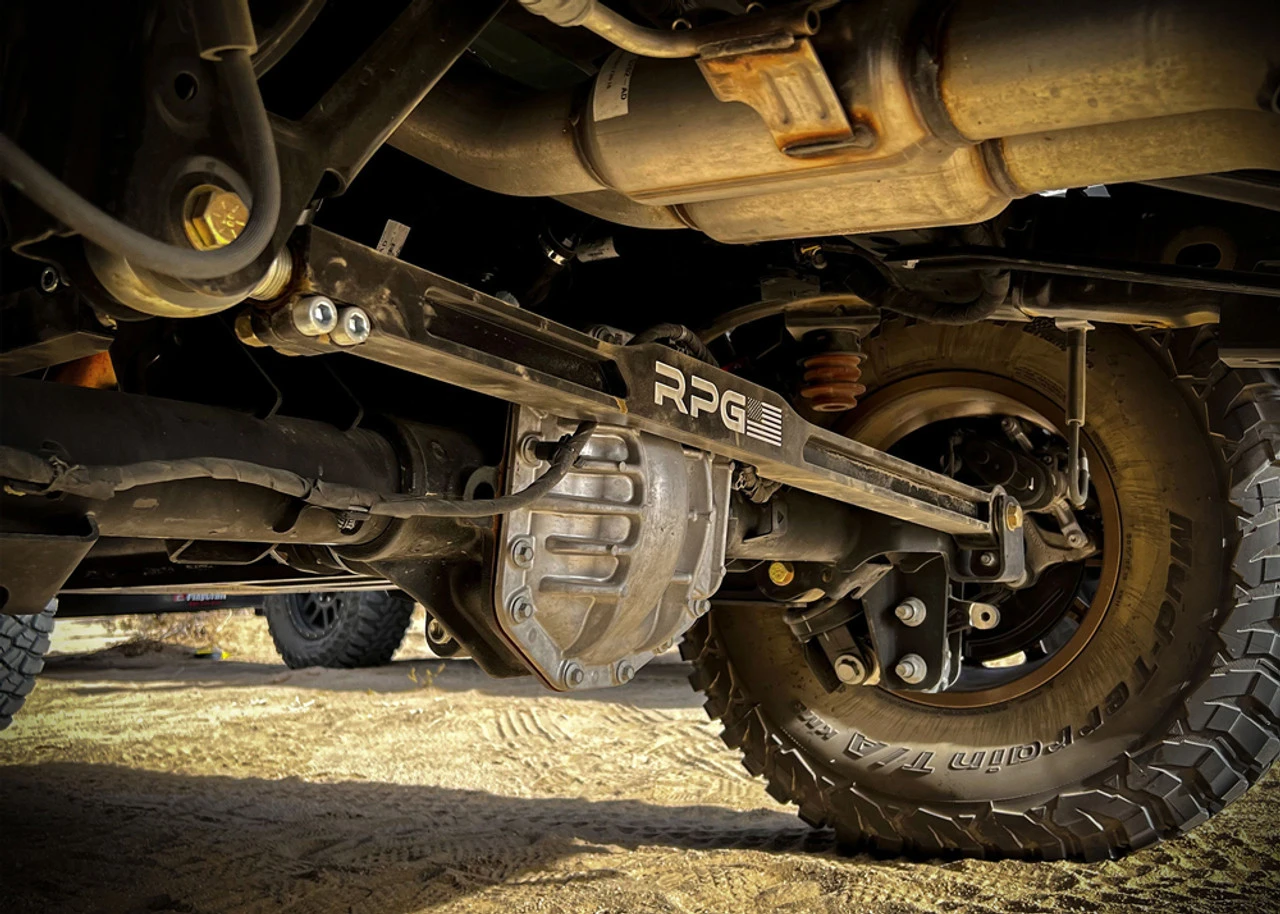 Welcome to the RPG Off-Road Bronco / Bronco Raptor Adjustable Billet Panhard Bar! The RPG Off-Road Bronco Raptor Billet Adjustable Panhard Bar is machined in-house in Southern California from aerospace-grade 6061 Aluminum and features and 1″ bearing and 1″ heims from our friends at FK Rod Ends. The panhard bar is adjustable via the 1″ heim in order to re-center the axle following ride height adjustments, and will make a noticeable difference to the feel and performance of your Bronco Raptor rear suspension as the bearing and heim will cycle smoothly throughout the entire suspension cycle and will not experience binding like the stock bushings. Complete your Bronco Raptor rear suspension with our Upper Links and Lower Links.