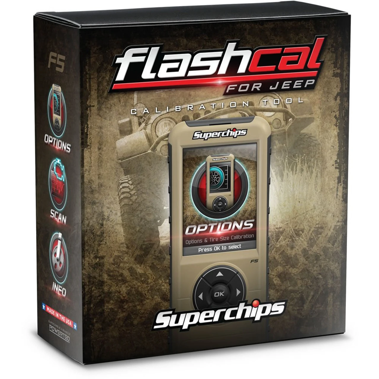 Now Shipping! It’s here! The Flashcal for JL Wrangler is first, and BEST, to market. Wrangler JL owners need the tire and gear options Flashcal provides. Enjoy seamless functionality to accommodate the lift, suspension, and tires you’ve installed on your JL. Superchips has loaded the Flashpaq PN 3571-JL with the most sought-after features. Configure your JL to review all product features. Be sure to pay close attention to your install guide. The team at Superchips spells our how to install your Flashcal to take advantage of tire size, gear ratio, TPMS adjust and more. Enjoy the ride with the Flashcal for JL Wrangler. * Results and feature set may vary based on vehicle make, model, and aftermarket upgrades. Read all instructions before installation and/or operation of this product use. * This product has not been tested or validated on right-hand drive Jeep applications or imported (non-American VIN based)Jeep applications. They are not supported by this product. * Note: Daytime running light options are only available on JL Wranglers where daytime running lights come equipped.