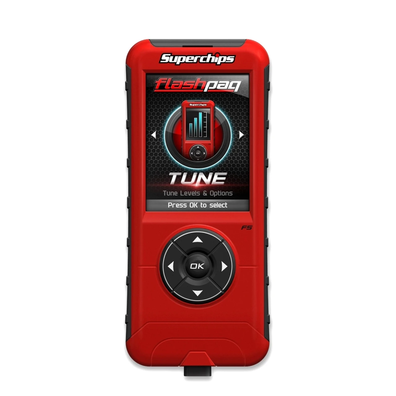 The all-new Flashpaq F5 is the industry leading handheld tuner. With this easy to use handheld tool, you can add horsepower in minutes without turning a wrench! The user interface has been redesigned with simplicity and functionality in mind. It is now easier than ever to select your power level and have instant horsepower gains, driveability improvements and prevent unneeded downshifting! Mileage gains are also achievable with our new optimized and efficient tuning. The Flashpaq F5 is packed full of tuning experience with over 30 years of tuning history. Tuning that you can trust is backed by an industry exclusive 2 year powertrain warranty to ensure peace of mind!