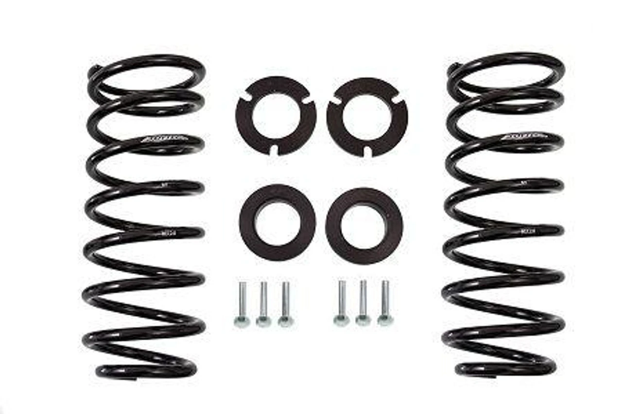 Includes front coil spacers which replace the coil perches on the stock shocks; front top plate spacers with longer studs, and Toytec Rear Superflex Coils which increase performance and wheel travel while maintaining a comfortable ride. All aluminum parts are anodized black. No additional components are required.