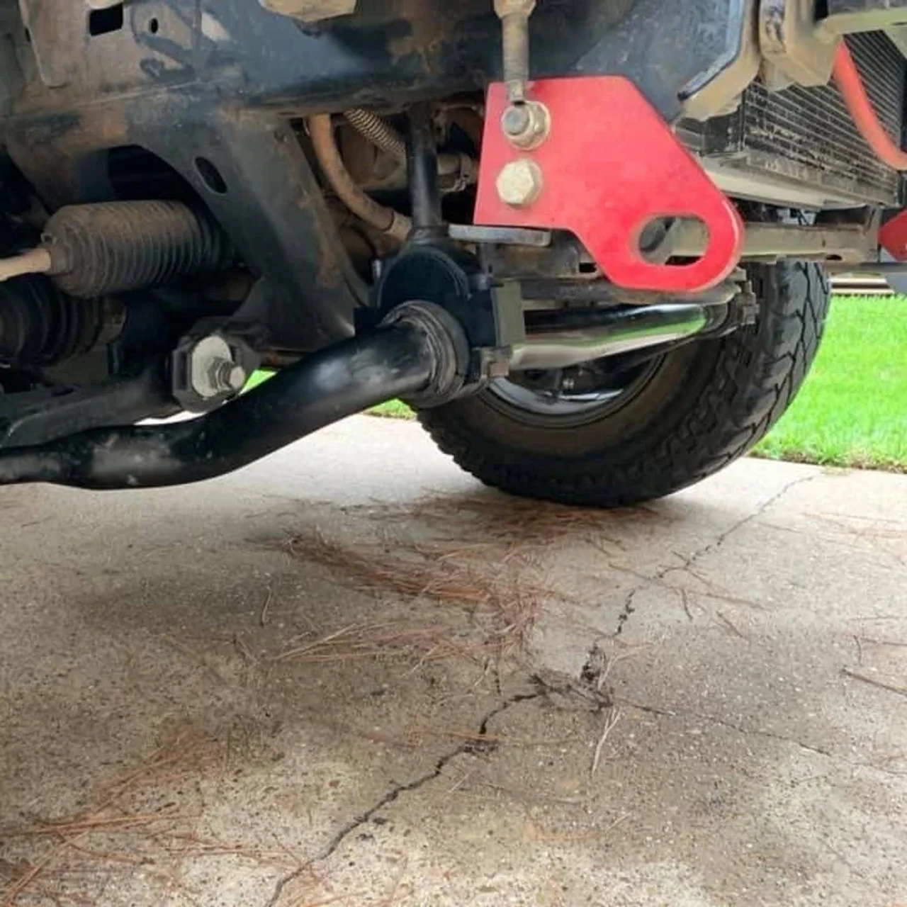 If you’re lifted, and have wheeled, you have undoubtedly encountered some KDSS lean. Treaty Oak Offroad developed this kit to run extended travel rear shocks and help combat KDSS lean.