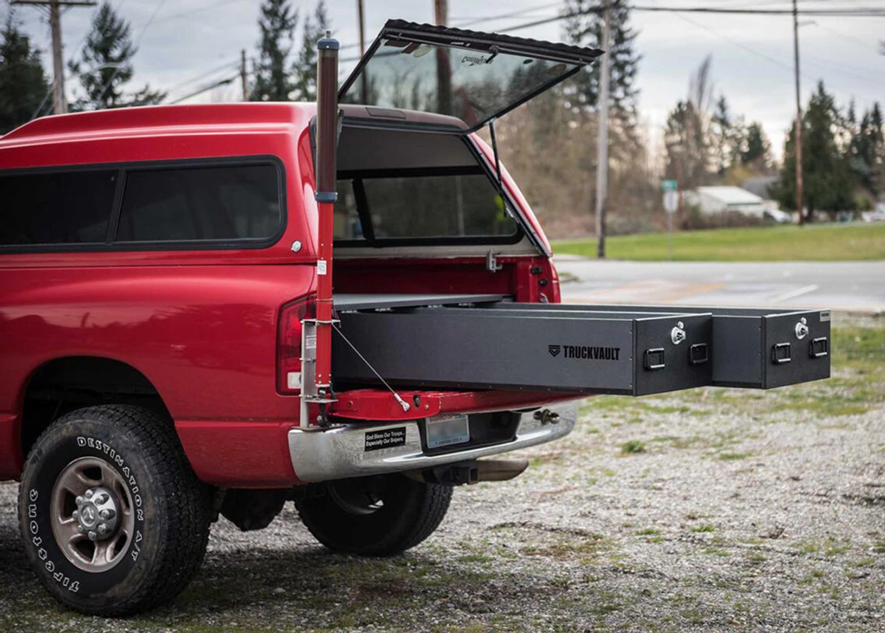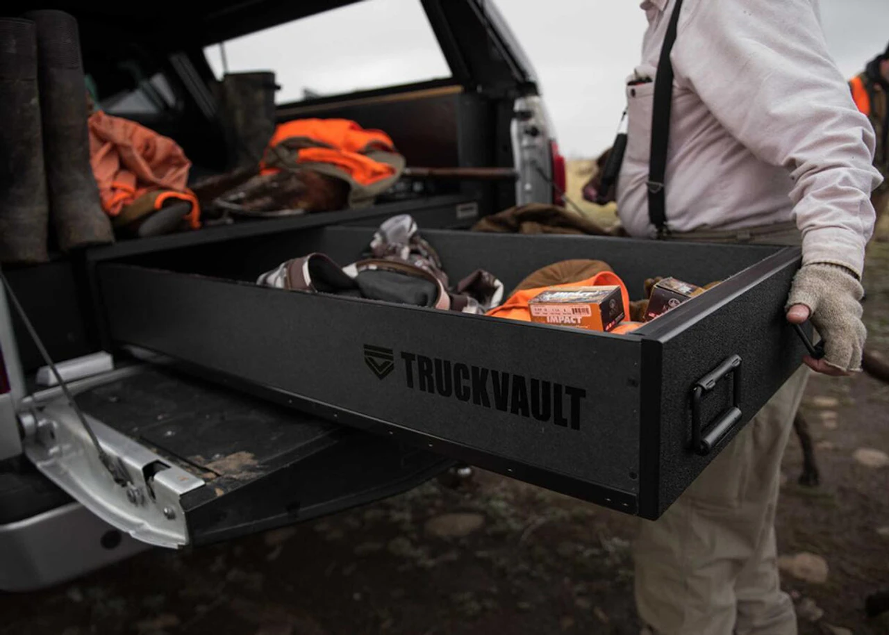 Have a topper shell or tonneau cover? The Covered Bed Line carpeted units are designed for pickups with toppers and feature heavy-duty locks and full-length locking drawers. Choose from numerous models for covered and uncovered pickups that fit and conform to your bed dimensions and are available in Standard, Utility and Magnum height versions. Regardless of your pickup bed size and length, TruckVault® makes a storage system that will not only organize, but protect and secure your gear from the elements and thieves.