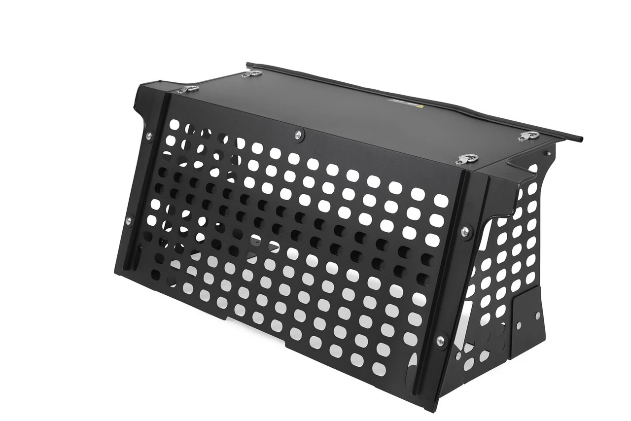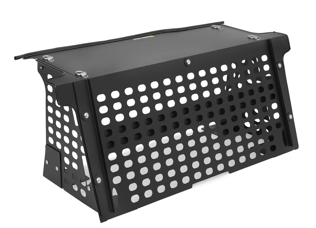 The Ford Bronco Security Deck Enclosure creates a large and lockable storage area. The lid secures shut using Tuffy’s patented security system working in conjunction with the Bronco’s locking tailgate. The front and side panels have a MOLLE grid designed into the surface for increaseed ventilation and infinite gear attachement organization options. Four D-ring tie downs come standard on the lid for securing extra grab bags and gear for your next adventure. The entire Tuffy Deck Enclosure is constructed using welded steel, heavy duty fasteners, and covered with a durable textured powder coat finish. The Tuffy Deck Enclosure does not rely on the wheel well to create an enclosed space adding an additional level of security. The vehicle power lock switches on the tailgate become disabled after a few seconds when locking the doors with the key fob so the enclosure remains secured while you’re away. The patented design, quickly and easily installs to the vehicle floor with standard hand tools in the 3-door model with and without an OEM hardtop.