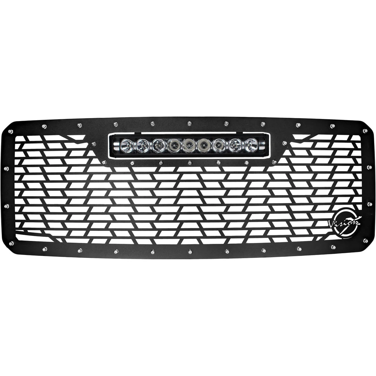 Vision X will transform the look of your truck while shining tremendous amounts of light on the road or trail with the all new VX Series Grilles, featuring four 4.7″ CG2 LED Light Cannons or a 20″ XPR LED Light Bar. The VX Grilles have a unique style, and manufactured from Stainless Steel, with durable Satin black powder coating. Each is supplied with polished T-304 Stainless studs and black studs for personal customization.