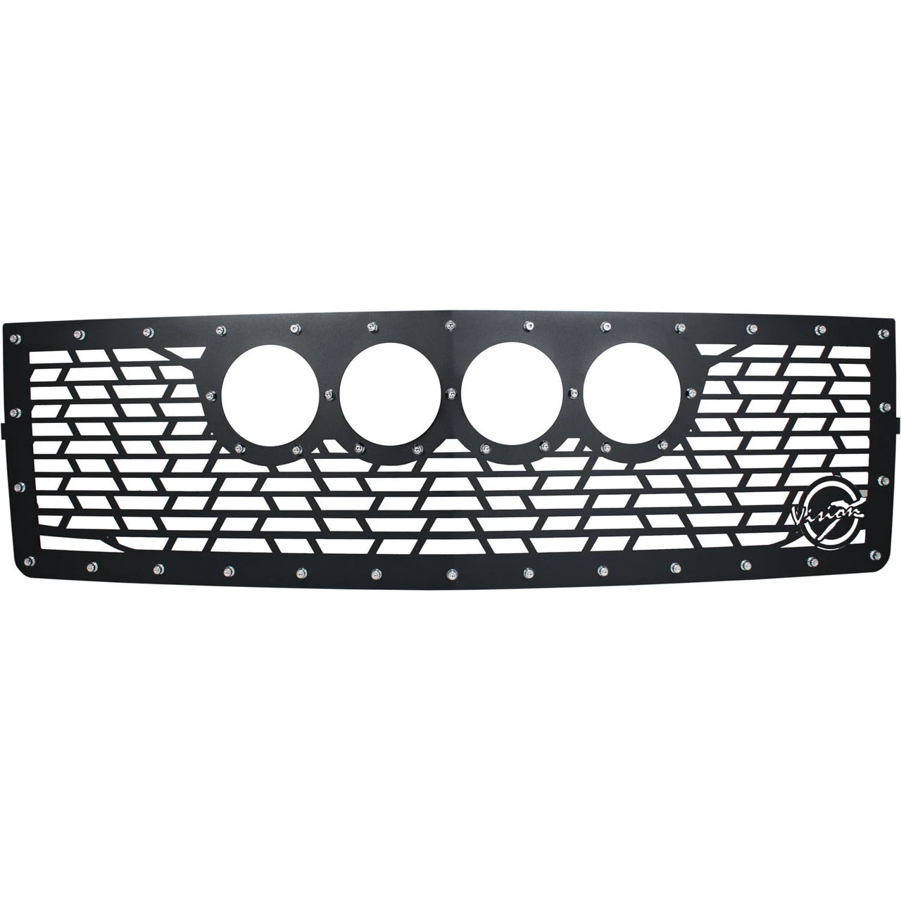 Vision X will transform the look of your truck while shining tremendous amounts of light on the road or trail with the all new VX Series Grilles, featuring four 4.7″ CG2 LED Light Cannons or a 20″ XPR LED Light Bar. The VX Grilles have a unique style, and manufactured from Stainless Steel, with durable Satin black powder coating. Each is supplied with polished T-304 Stainless studs and black studs for personal customization.